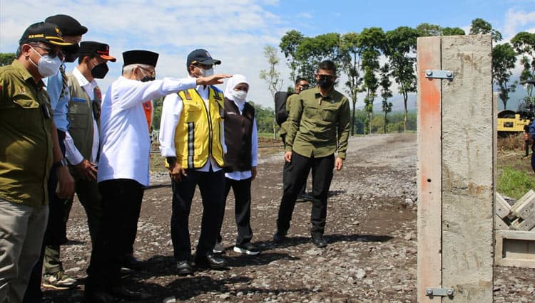 TIMES Wamena/Sekjen PUPR RI Mohammad Zainal Fatah dampingi Wapres RI KH Ma'ruf Amin meninjau lokasi pembangunan Hunian Sementara (Huntara) bagi korban terdampak erupsi Gunung Semeru di Desa Sumbermujur, Kecamatan Candipuro, Kabupaten Lumajang.
